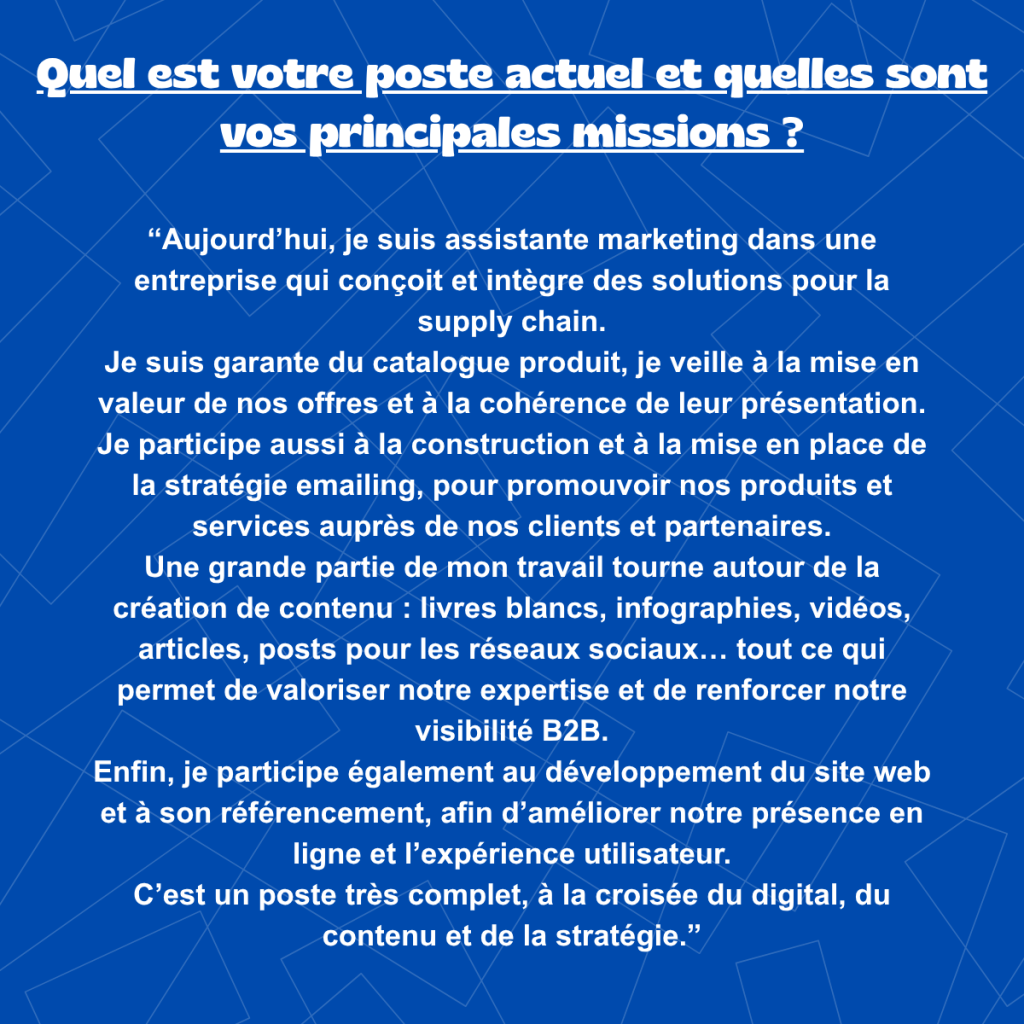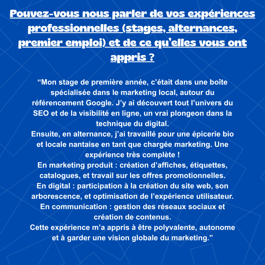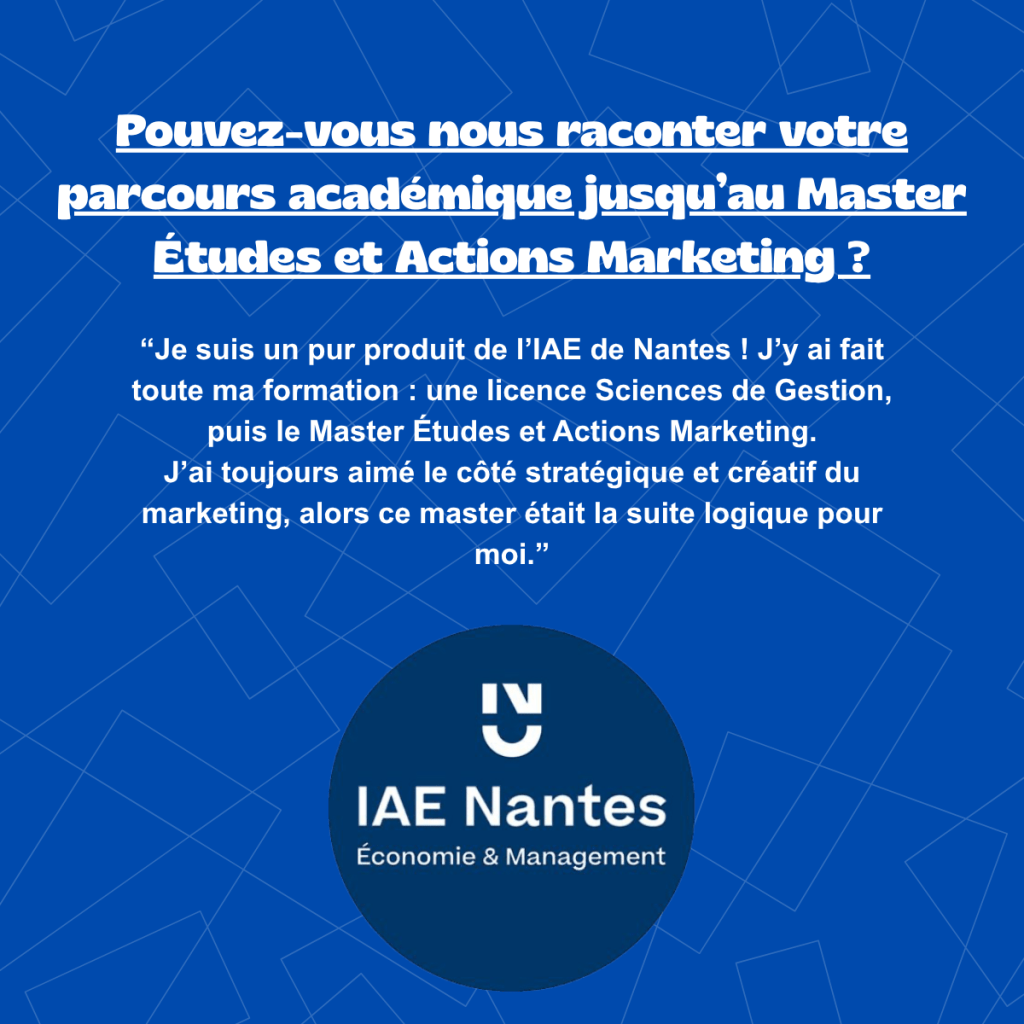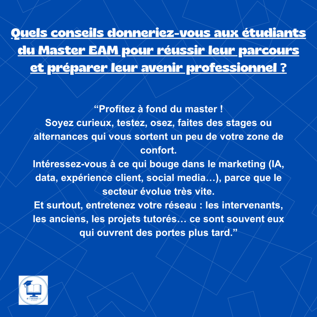 Nos alumnis du Master EAM (Études et Actions Marketing), vous font découvrir leurs parcours.